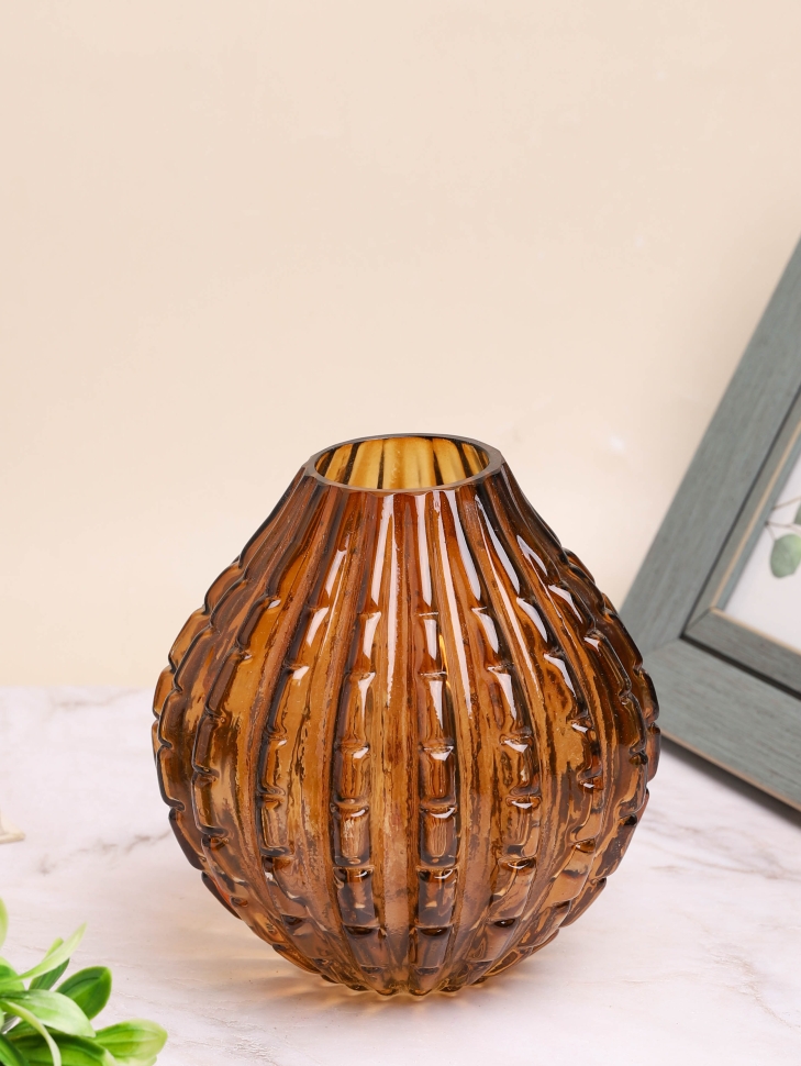 Ваза стекло h17 d17х6,5см К 177 янтарный