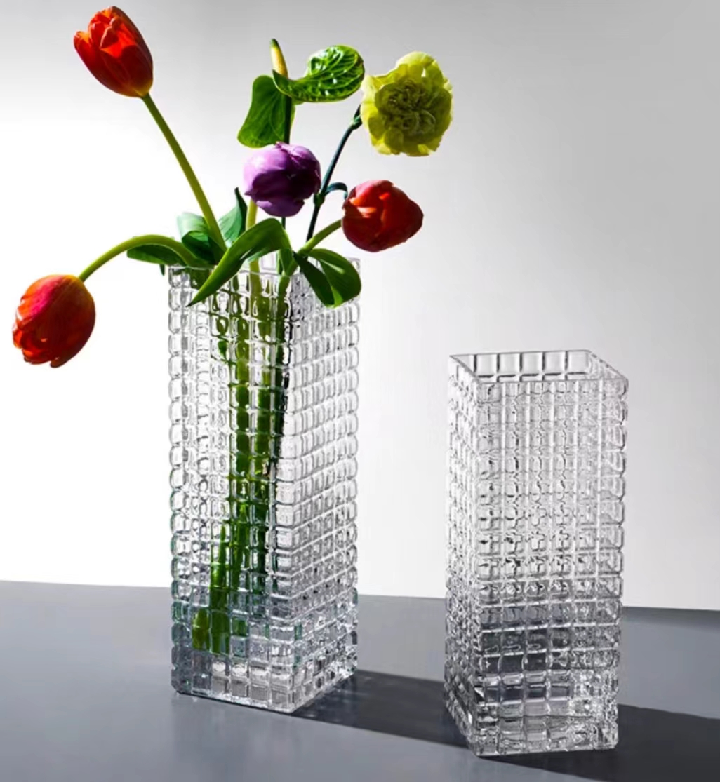 Ваза стеклянная 10*10*30 см, 1 шт, прозрачный 8654