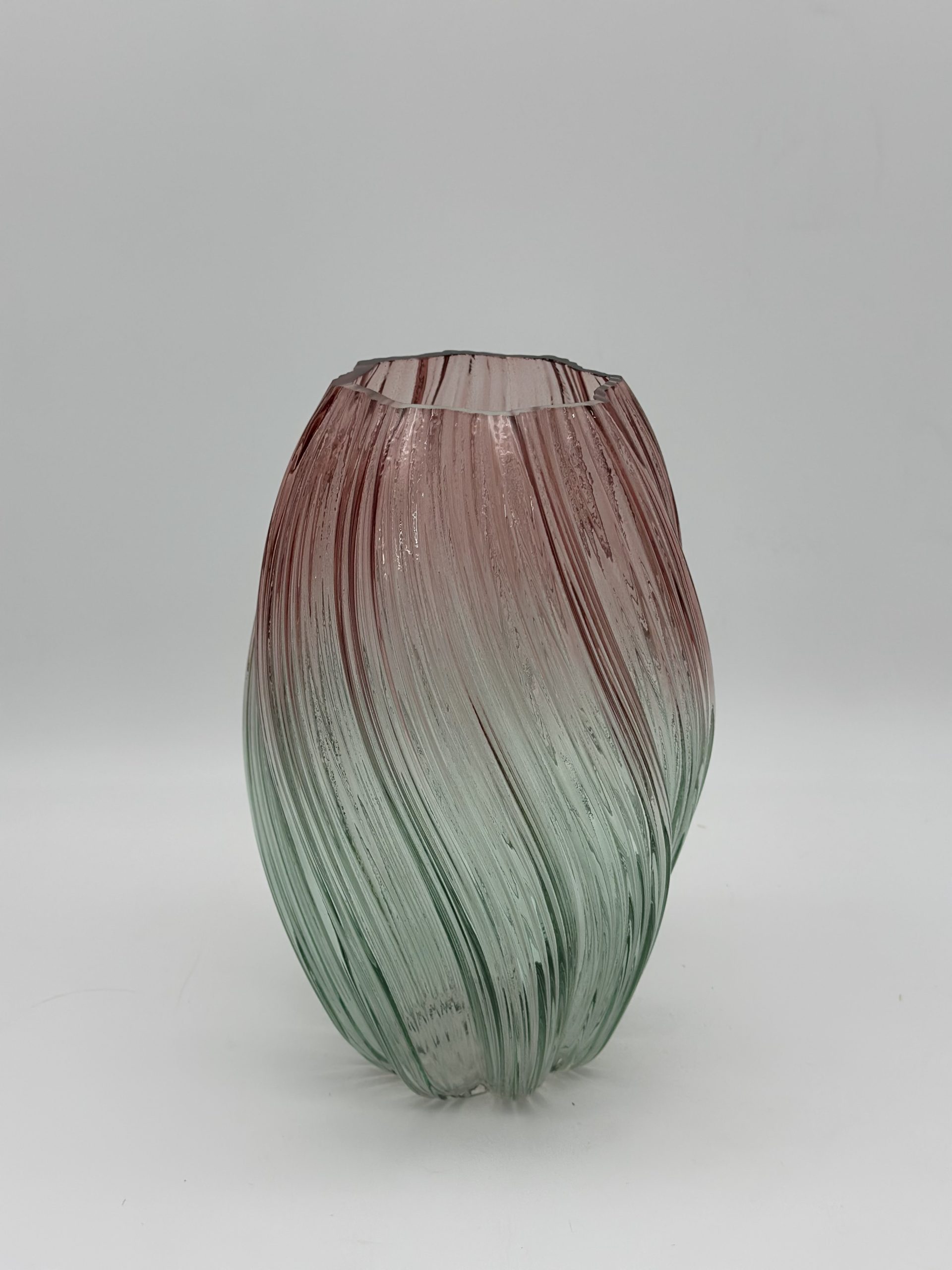 Ваза стеклянная D18 * H27, 1 шт., градиент розовый/зеленый 9819