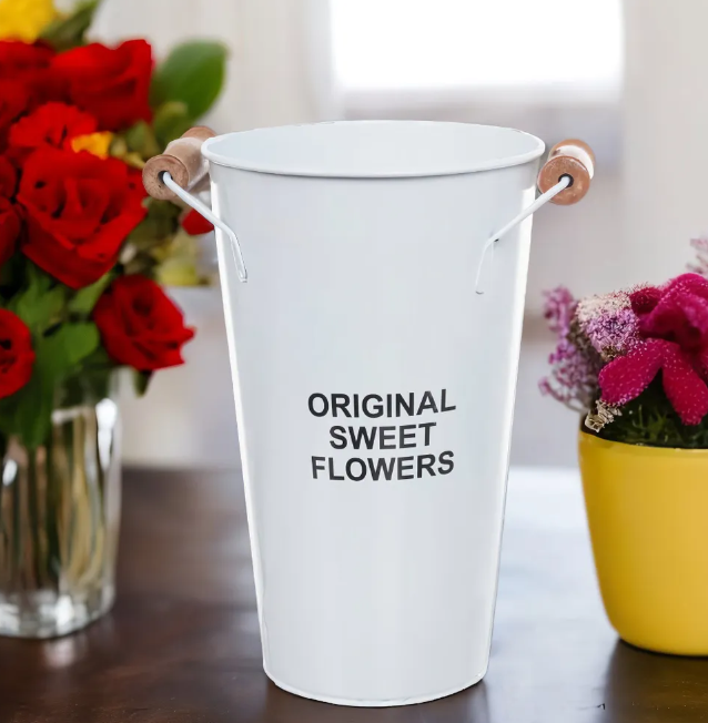 Вазон “Original sweet flowers” (цинк), D20хН40 см, 7 л, с ручками Белый, (H-40, D-20, Белый)