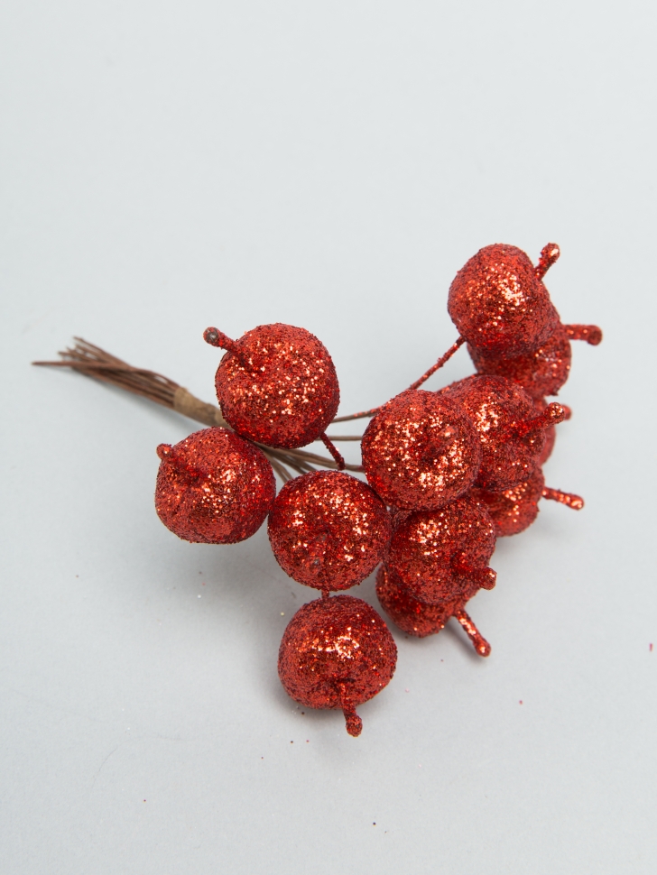 Яблоко на проволоке 12шт. 2,2х10,5см К с глитерром красный