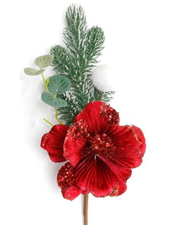 / Декоративная ветка с красным цветком, 36 см