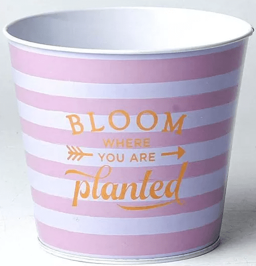 / Декоративное кашпо “Нежные полосы” 13,3XH11,5CM/B9.5, металл, св.розовый