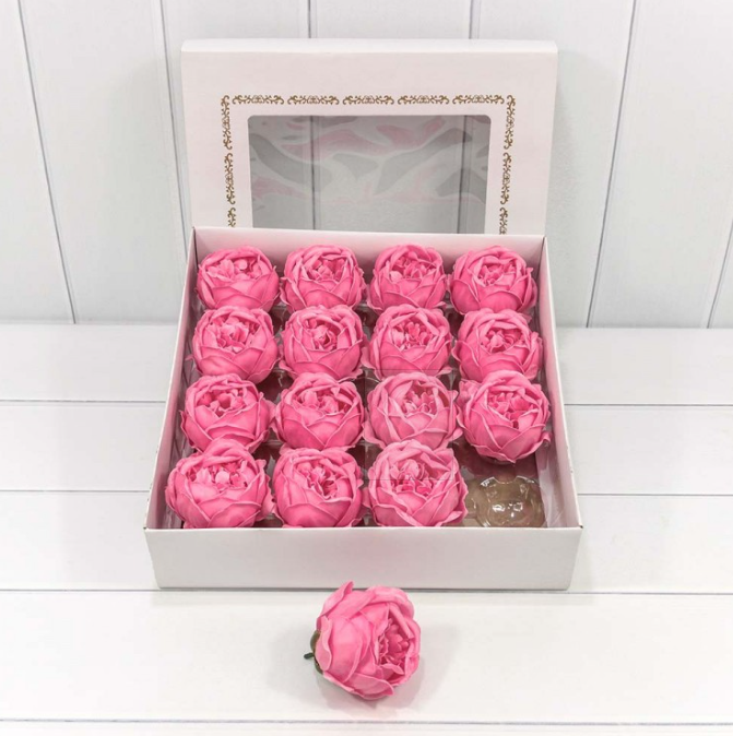 Декоративный цветок-мыло “Пион” Тёмно-розовый 8*8 16шт. 1/20