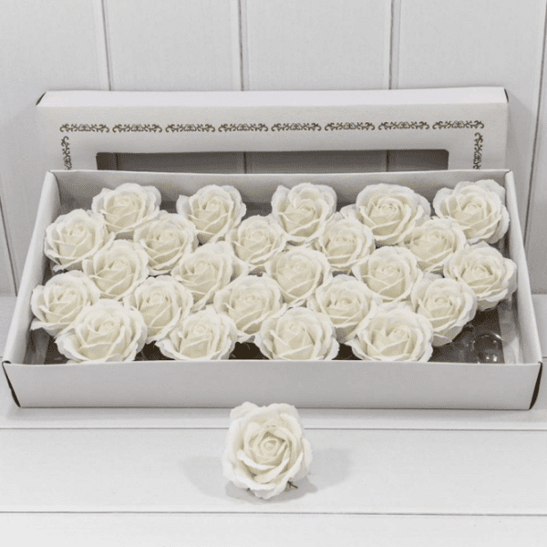Декоративный цветок-мыло “Большая роза” Белый 6,5*7 25шт. 1/20