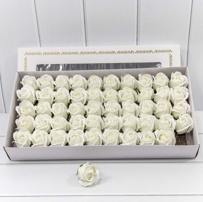 / Декоративный цветок-мыло “Роза” класс А Белый 5,5*4 50шт. 1/20