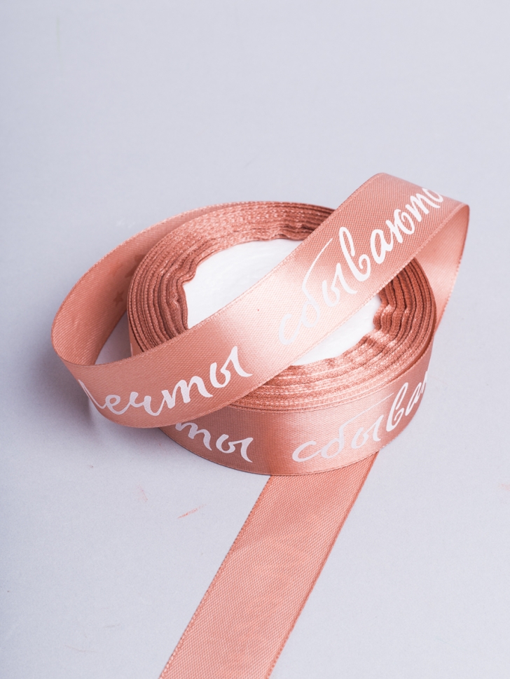 / Лента атласная 25мм х 25 ярд надпись Мечты сбываются капучино