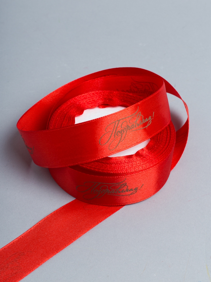 / Лента атласная 25мм х 25 ярд надпись Поздравляем! красная