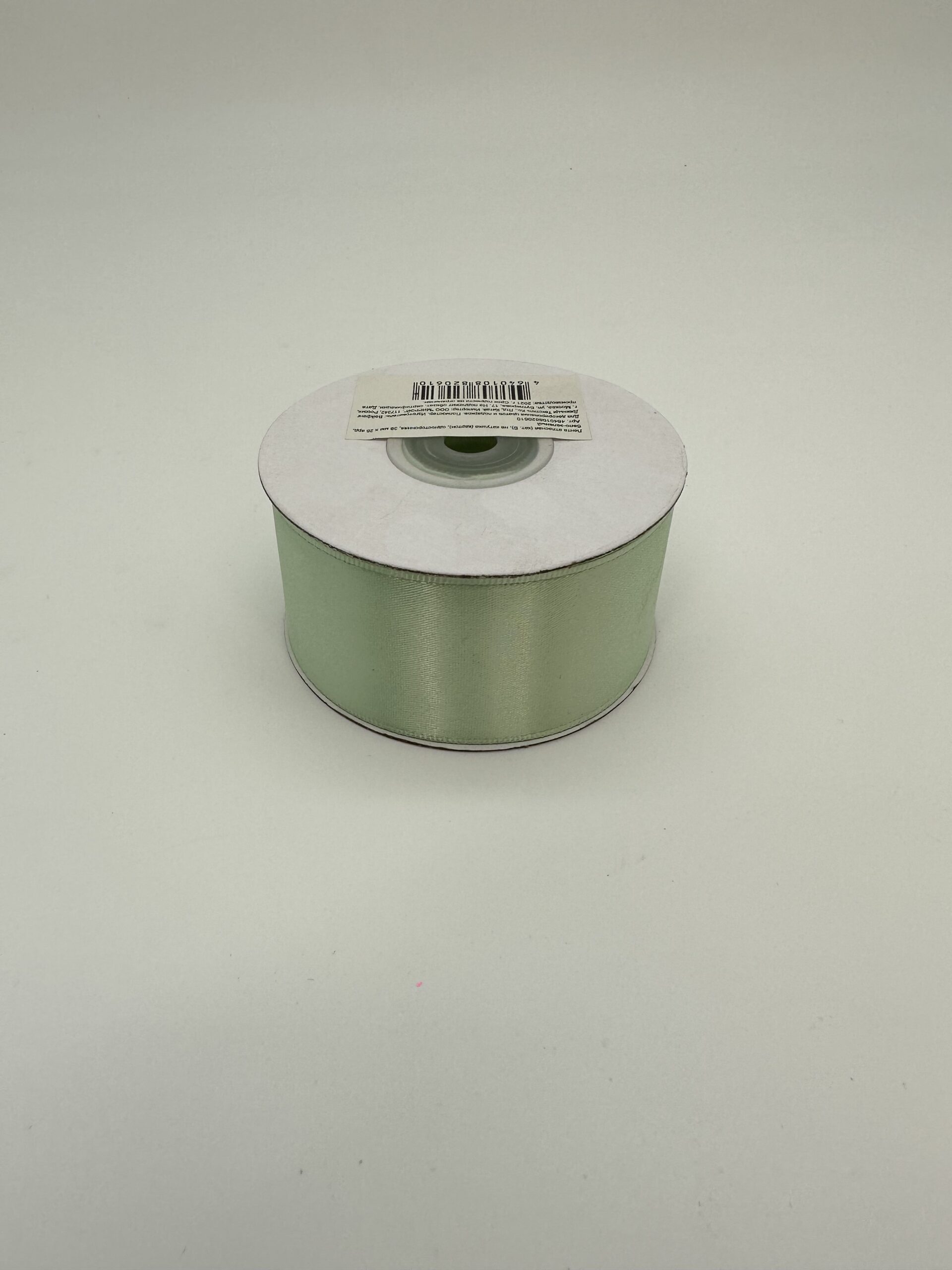 Лента атласная “Элит”, на катушке (картон), односторонняя, 38 мм х 25 ярд, бело-зеленый