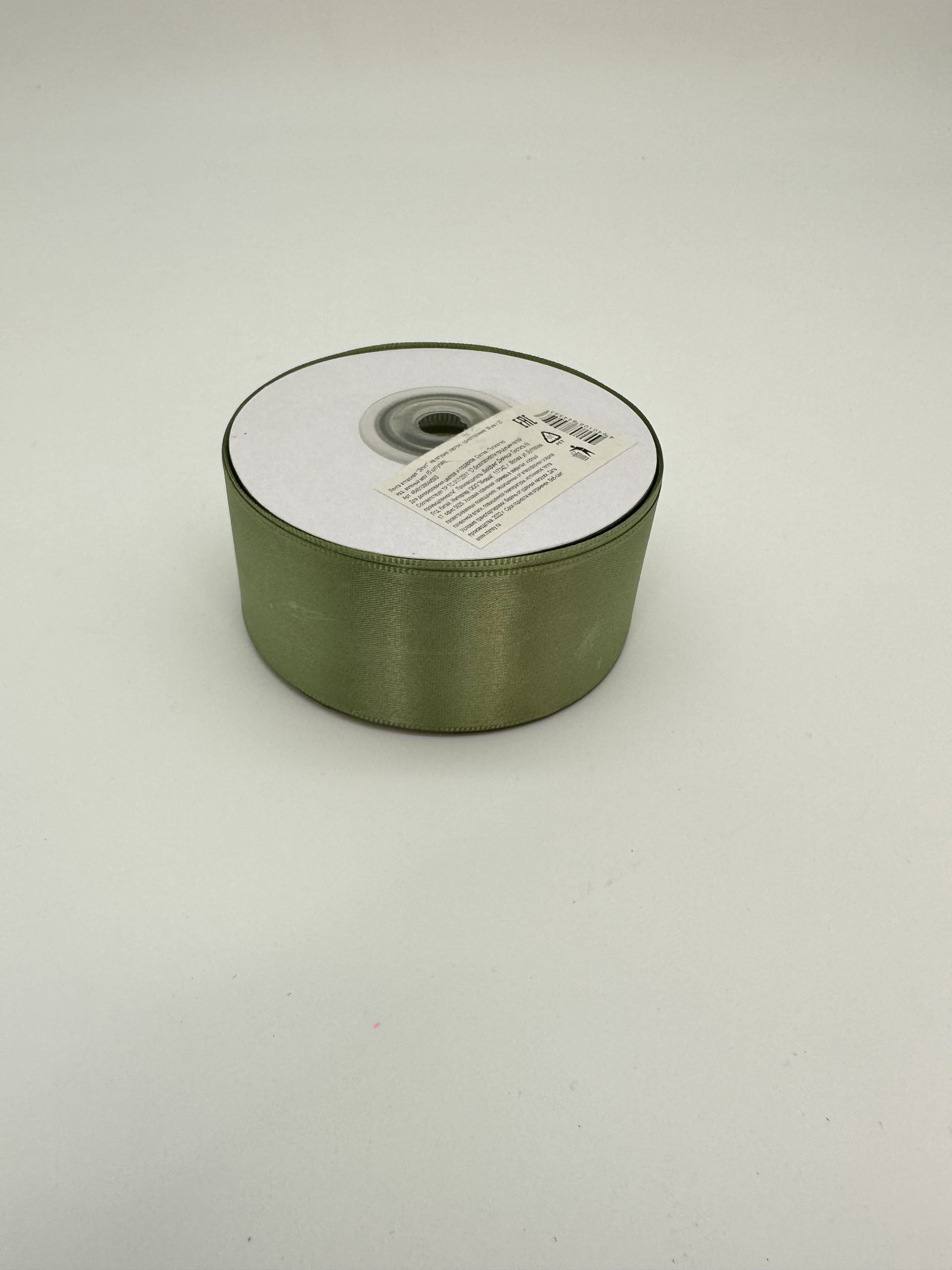 Лента атласная “Элит”, на катушке (картон), односторонняя, 38 мм х 25 ярд, зеленый мох