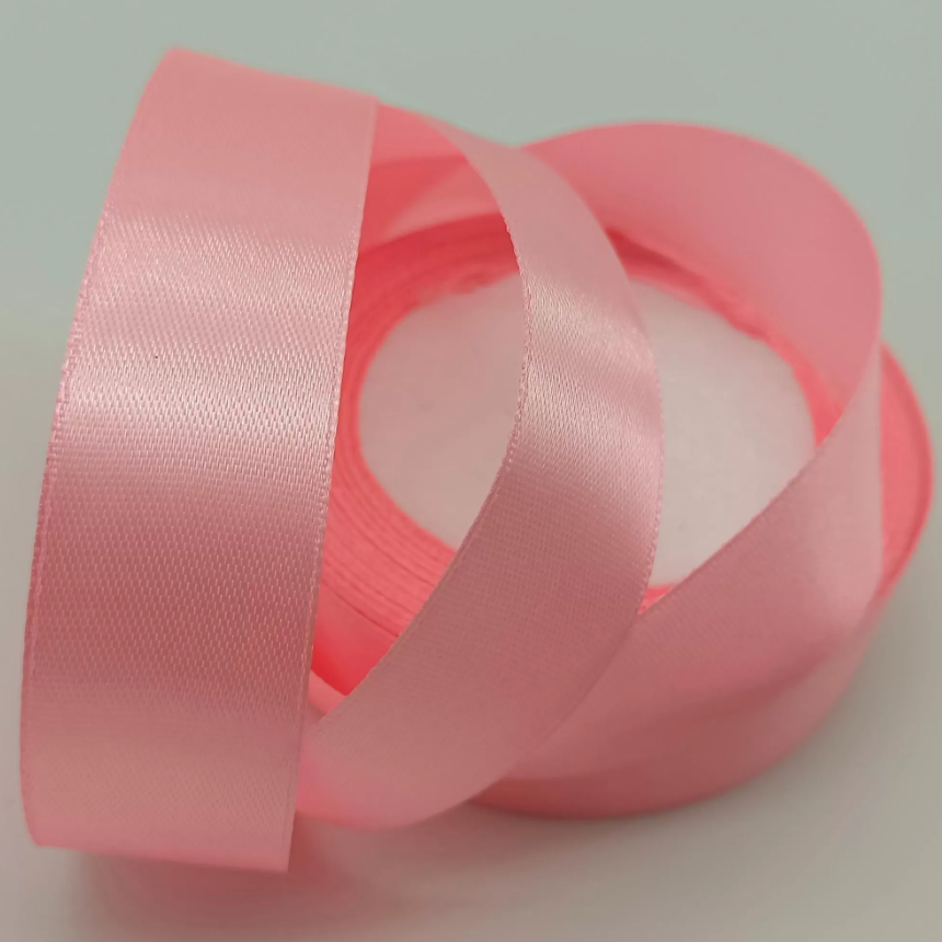 Лента атласная, на пене, односторонняя, 25 мм х 25 ярд, коралловый розовый (5 шт/упак)