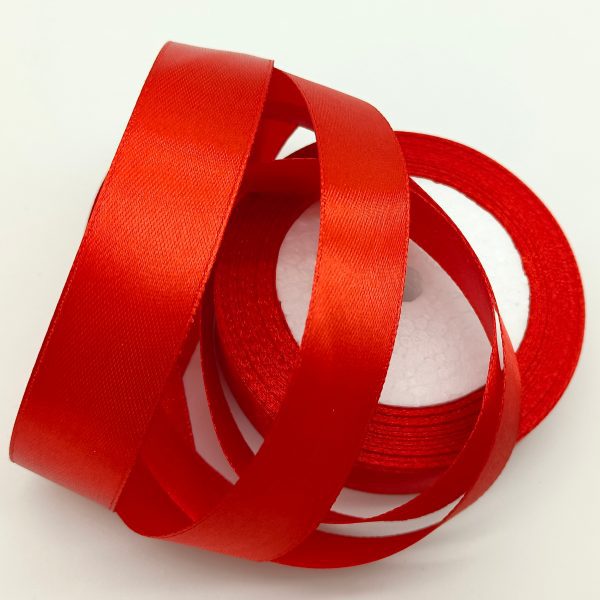 Лента атласная, на пене, односторонняя, 25 мм х 25 ярд, красный (5 шт/упак)