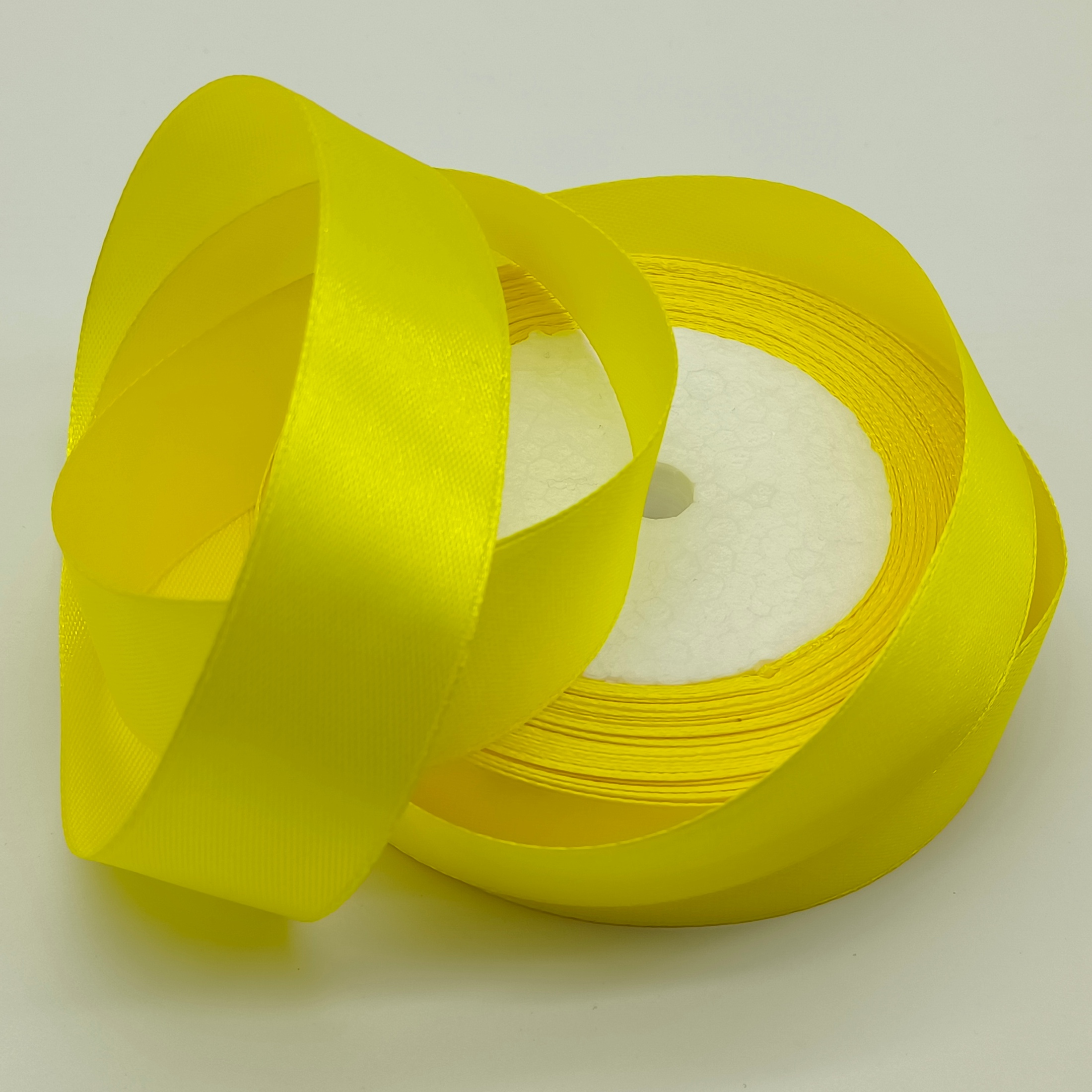 Лента атласная, на пене, односторонняя, 25 мм х 25 ярд, лимонный (5 шт/упак)