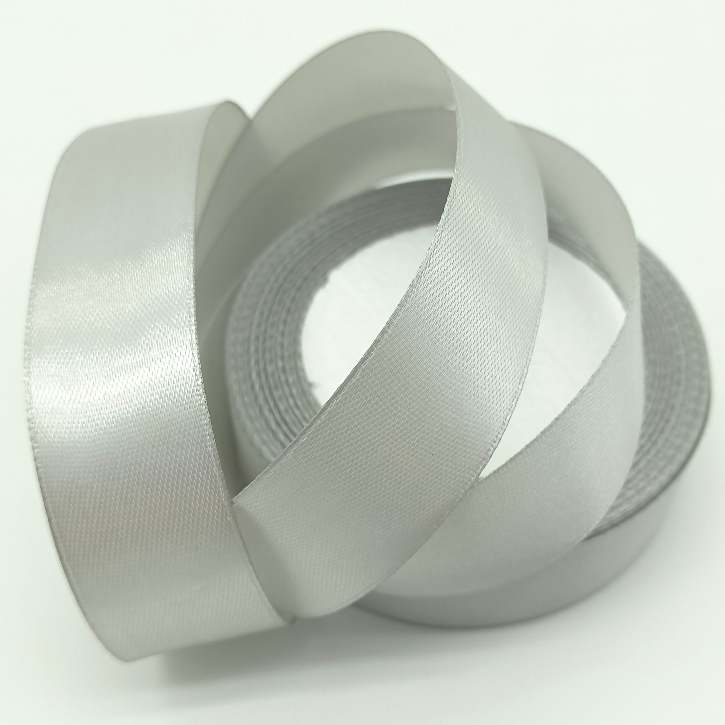 Лента атласная, на пене, односторонняя, 25 мм х 25 ярд, серебряный (5 шт/упак)