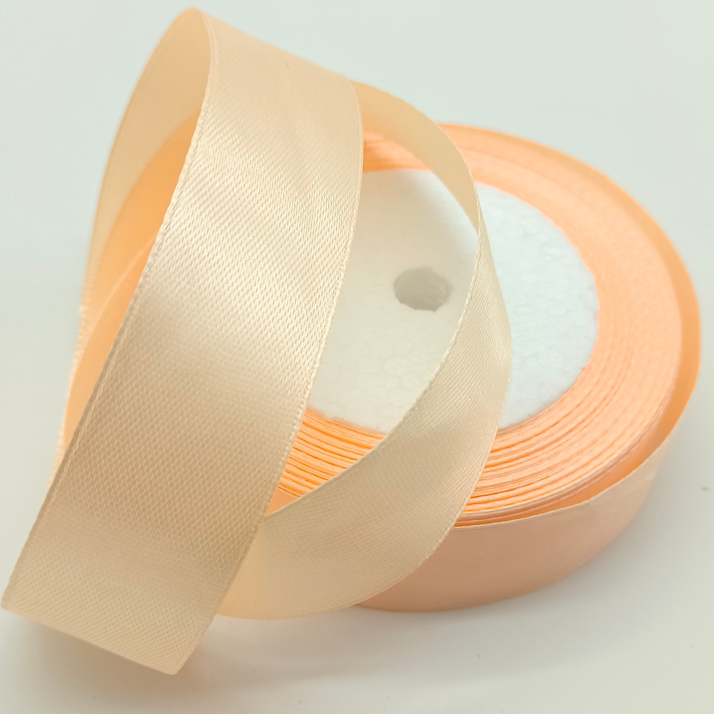 Лента атласная, на пене, односторонняя, 25 мм х 25 ярд, светло-персиковый (5 шт/упак)