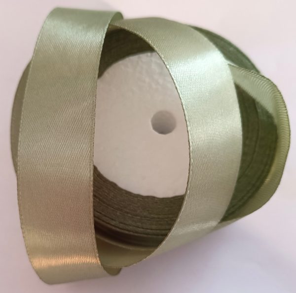 / Лента атласная, на пене, односторонняя, 25 мм х 25 ярд, зеленый мох (5 шт/упак)