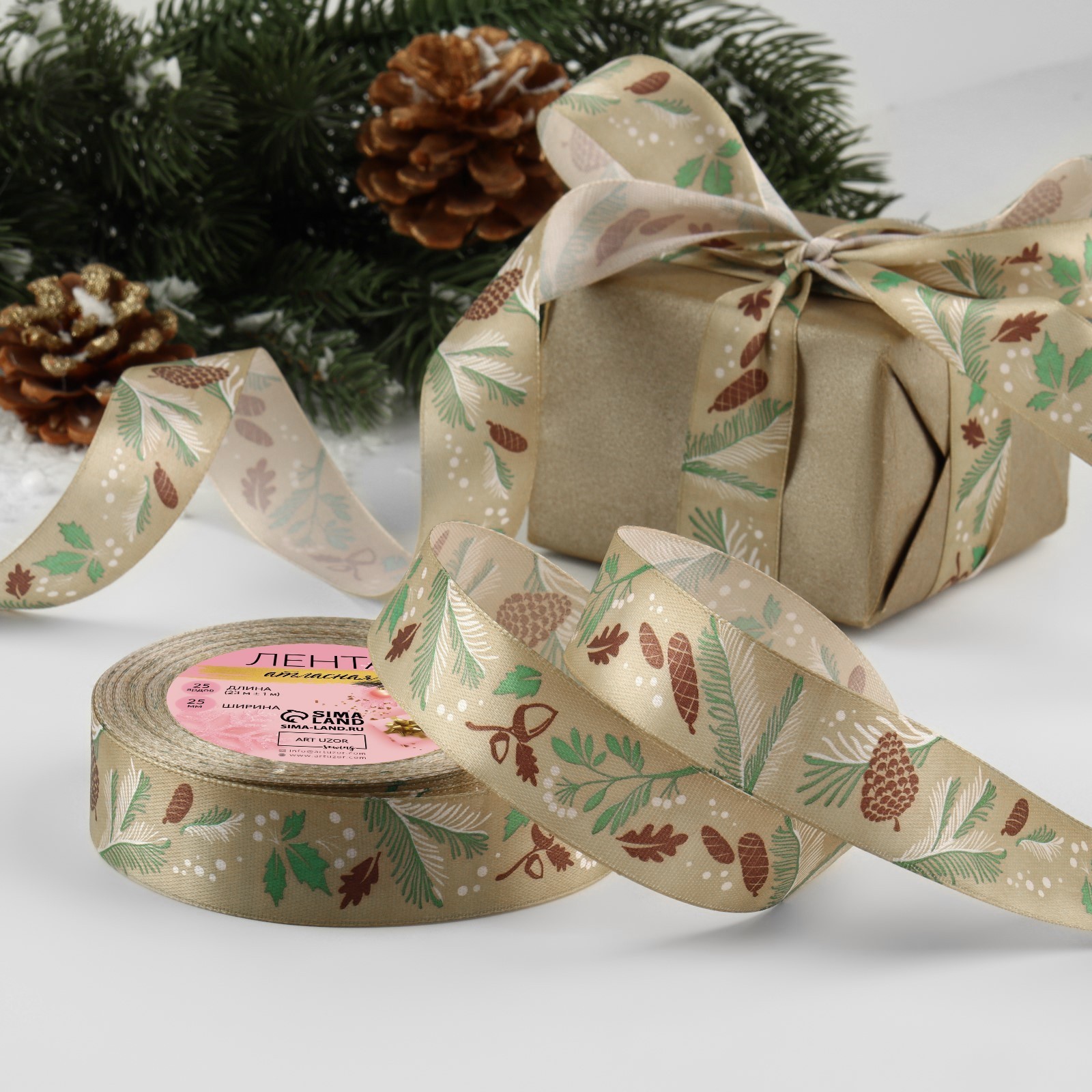 / Лента атласная «Новогодний лес», 25 мм, 23±1 м, бежевая