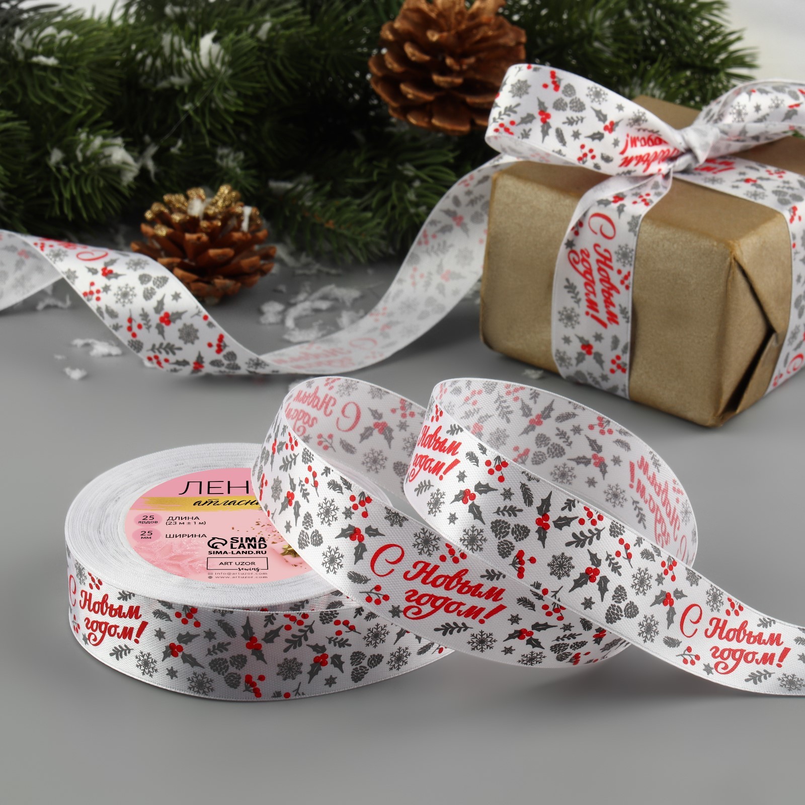 Лента атласная «С Новым годом!», 25 мм, 23±1 м, белая