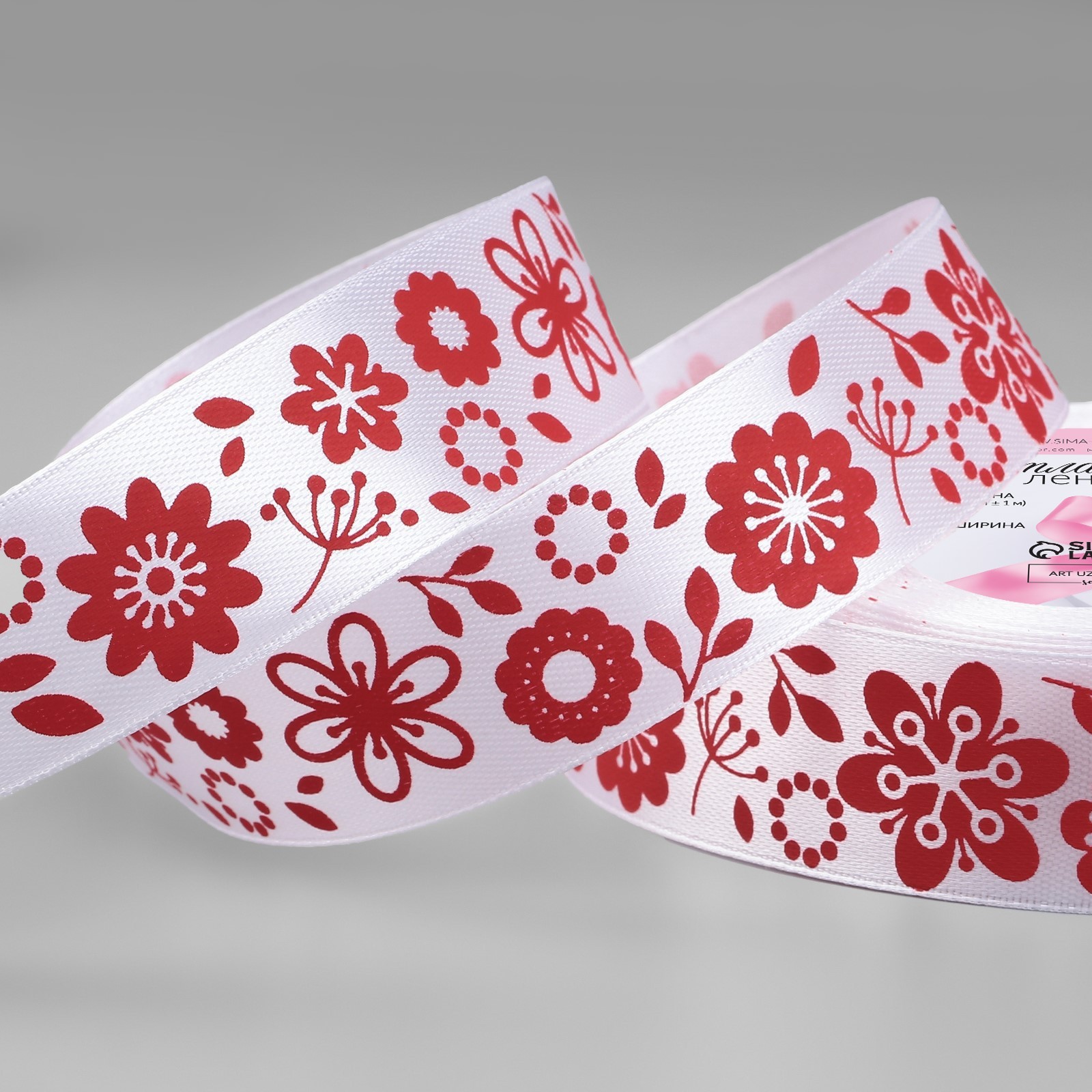 Лента атласная «Осенние цветочки», 25 мм, 23±1 м, белая №001