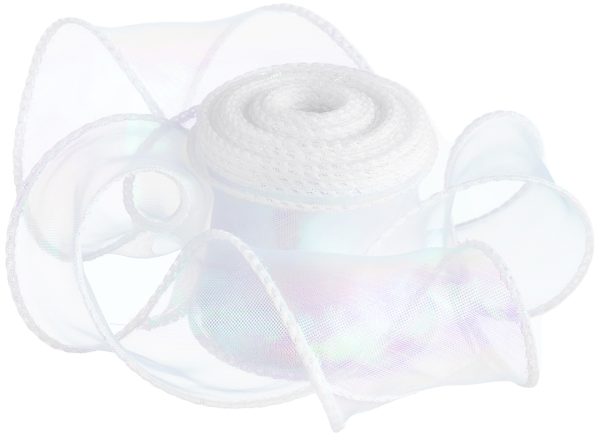 Лента декоративная (4 см*9,14 м) Органза с леской, Белый, Хамелеон, 1 шт.