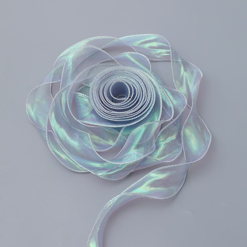 Лента декоративная (4 см*9,14 м) Органза с леской, Серебро, Хамелеон, 1 шт.