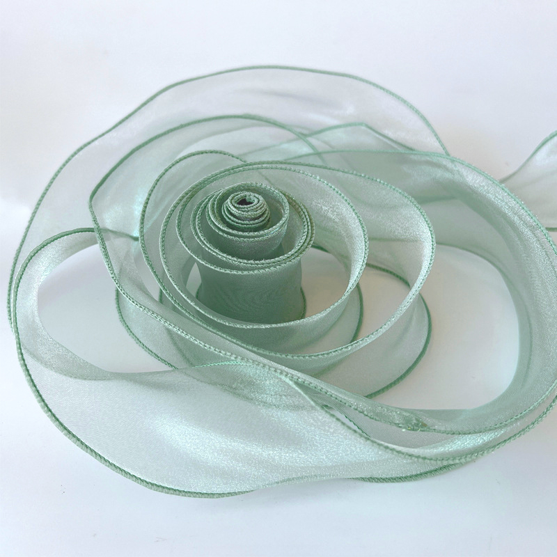 Лента декоративная (4 см*9,14 м) Органза с леской, Нежная мята, 1 шт.