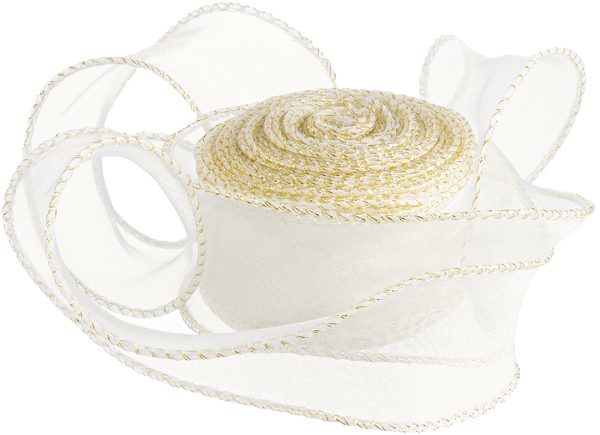 Лента декоративная (4 см*9,14 м) Органза с леской, Золотая кайма, Кремовый, 1 шт.