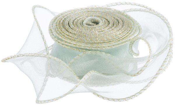 Лента декоративная (4 см*9,14 м) Органза с леской, Золотая кайма, Мятный, 1 шт.