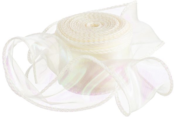 Лента декоративная (4 см*9,14 м) Органза с леской, Кремовый жемчуг, Хамелеон, 1 шт.