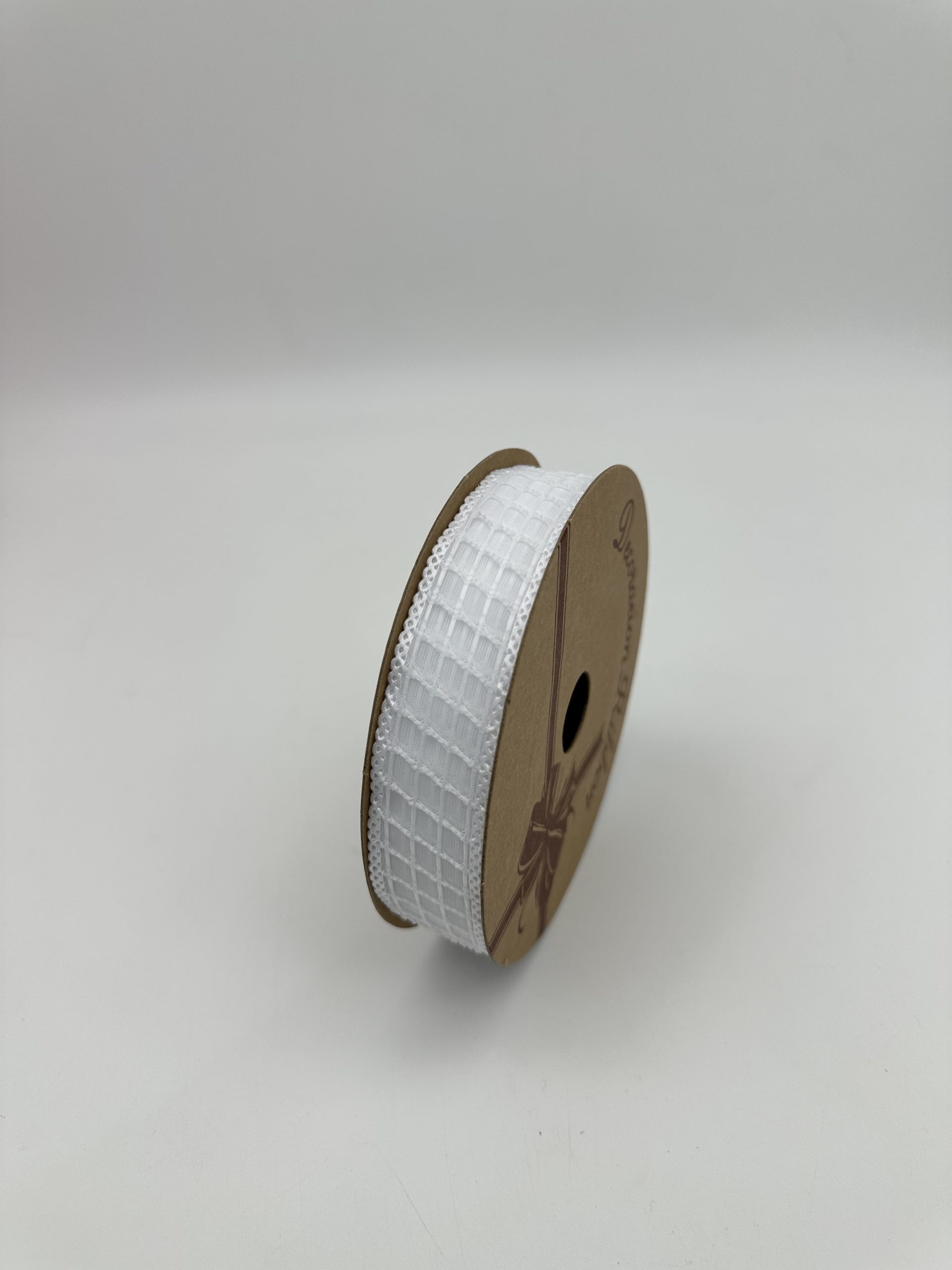Лента декоративная “Клетка” 25mm*10 ярд белый