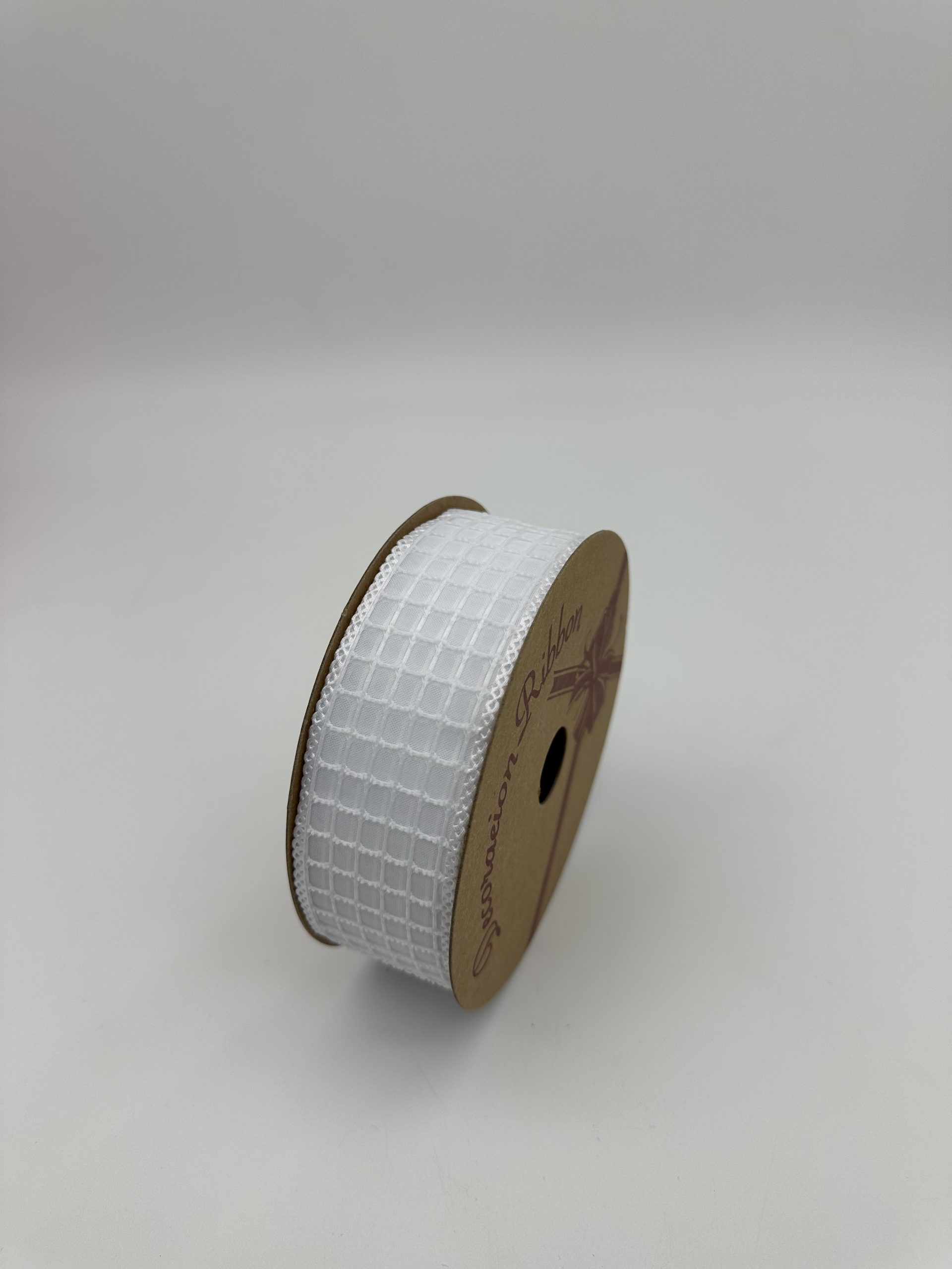Лента декоративная “Клетка” 40mm*10 ярд белый