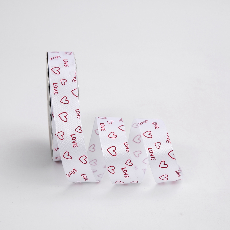 / Лента декоративная “Love”, полиэстер, 25 мм х 35 ярд., белый