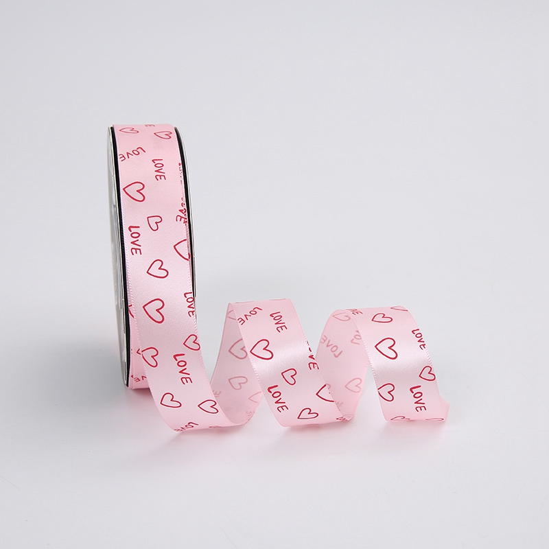 Лента декоративная “Love”, полиэстер, 25 мм х 35 ярд., розовый