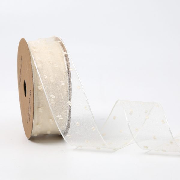 Лента “ГОРОШЕК” полиэстр 25мм*30ярд, бежевый/белый