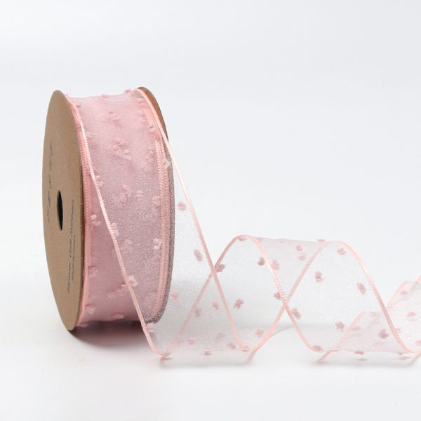 Лента декоративная “Точки” 4см*20ярд, розовый