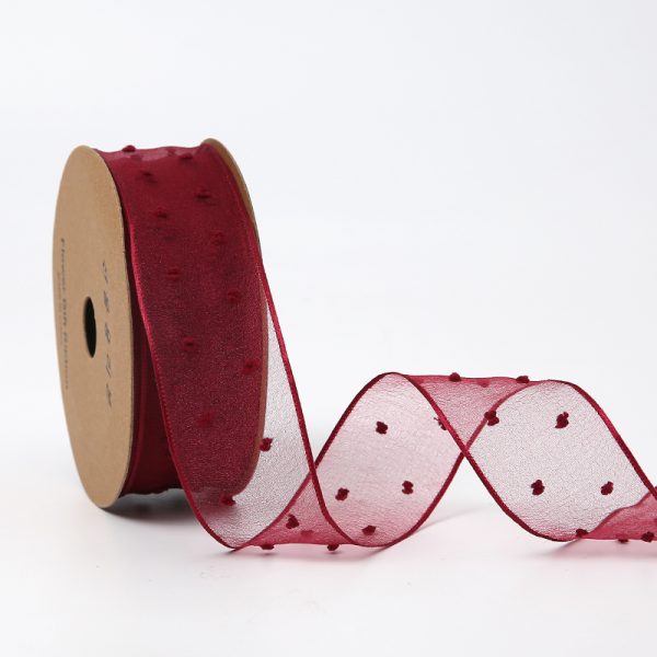 Лента декоративная “Точки” 4см*20ярд, винный