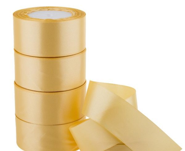 Лента декоративная односторонняя YY (атлас), 40 ммx25 ярд, светло-желтый 2411