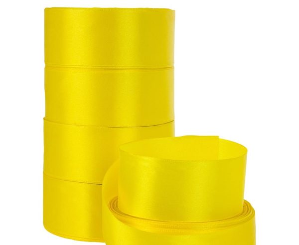 Лента декоративная односторонняя YY (атлас), 40 ммx25 ярд, желтый 4241