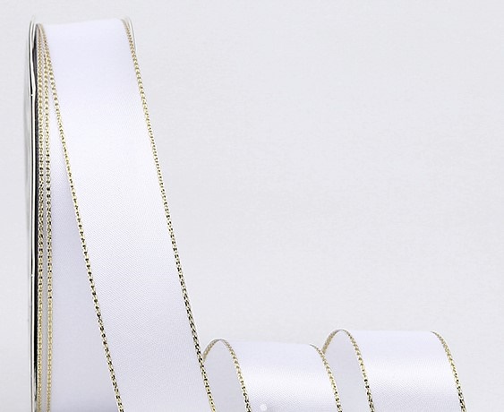 / Лента декоративная “Золотая кайма”, полиэстер, 25 мм х 40 ярд., белый