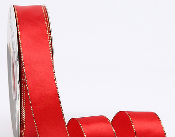/ Лента декоративная “Золотая кайма”, полиэстер, 25 мм х 40 ярд., красный