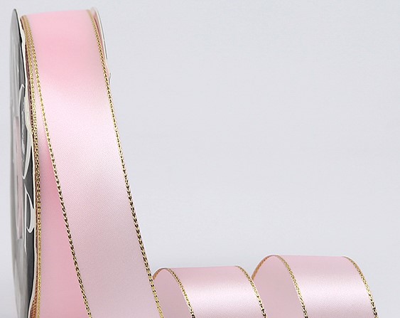 / Лента декоративная “Золотая кайма”, полиэстер, 25 мм х 40 ярд., розовый