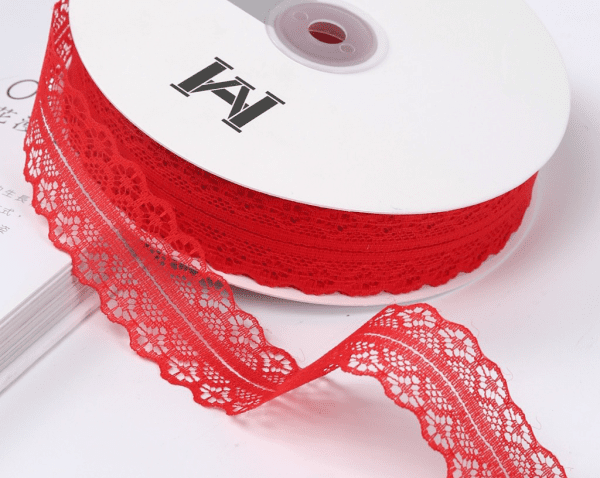 Лента декоративная “Тонкое кружево” полиэстр, 30мм*50ярд, красный