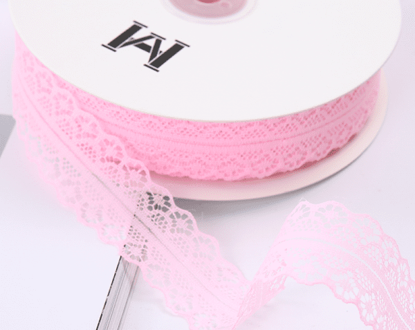 Лента декоративная “Тонкое кружево” полиэстр, 30мм*50ярд, розовый