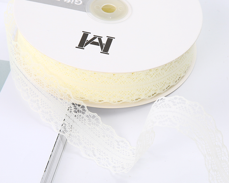 Лента декоративная “Тонкое кружево” полиэстр, 30мм*50ярд, шампань