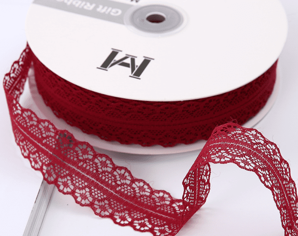 Лента декоративная “Тонкое кружево” полиэстр, 30мм*50ярд, винный