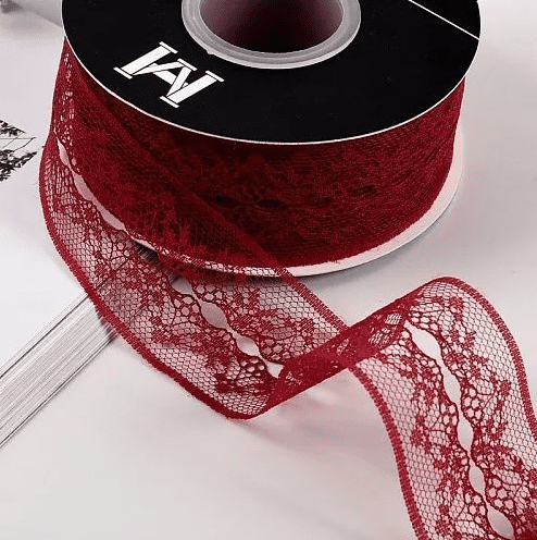 Лента декоративная “Кружево”, полиэстер, 40 мм х 25 ярд., красный