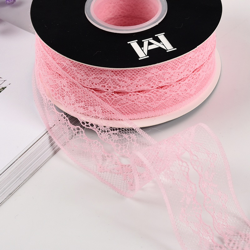 Лента декоративная “Кружево”, полиэстер, 40 мм х 25 ярд., розовый