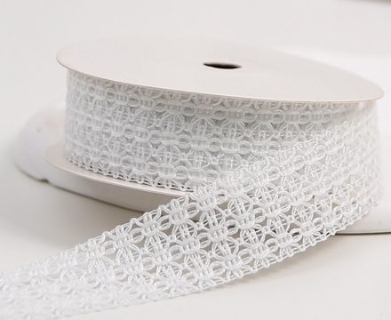 Лента декоративная “Ажурное плетение”, полиэстер, 25 мм х 13 ярд., белый