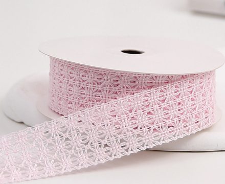 Лента декоративная “Ажурное плетение”, полиэстер, 25 мм х 13 ярд., светло-розовый