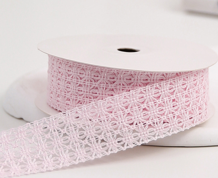 / Лента декоративная “Ажурное плетение”, полиэстер, 25 мм х 13 ярд., светло-розовый